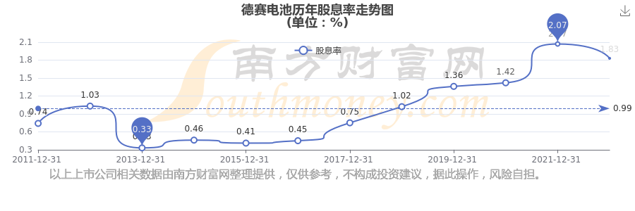 德賽電池歷年股息率走勢如下圖: