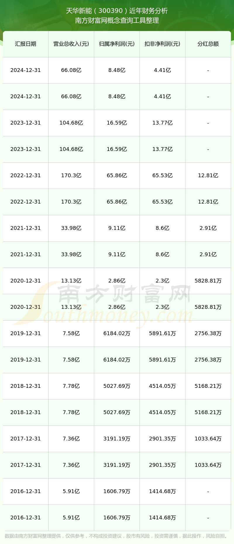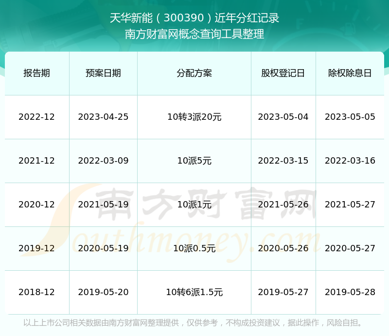 近年天華新能分紅派息情況如下表所示: