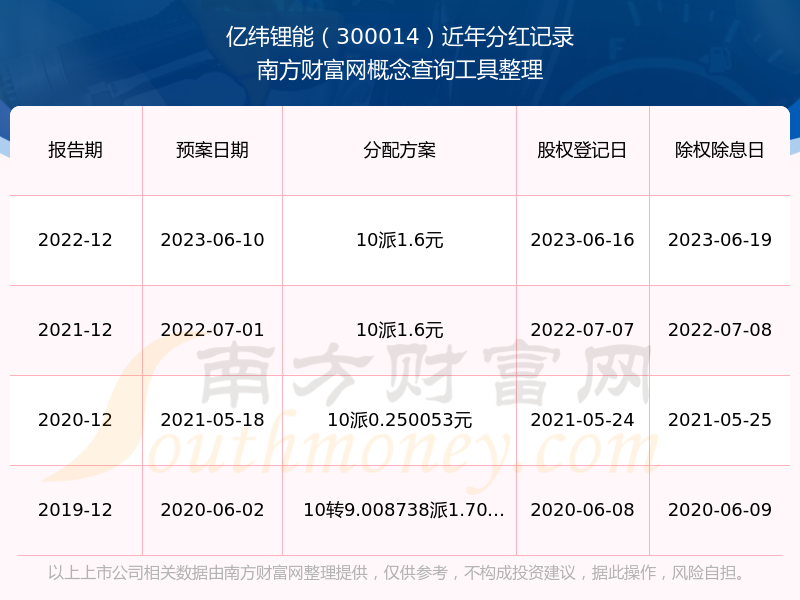 億緯鋰能最新一次公布的分紅方案:10派1.6元。