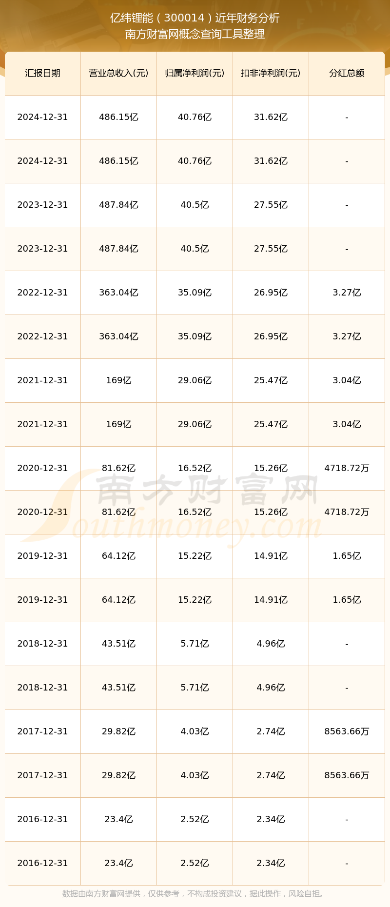 億緯鋰能歷年分紅派息情況如下表所示: