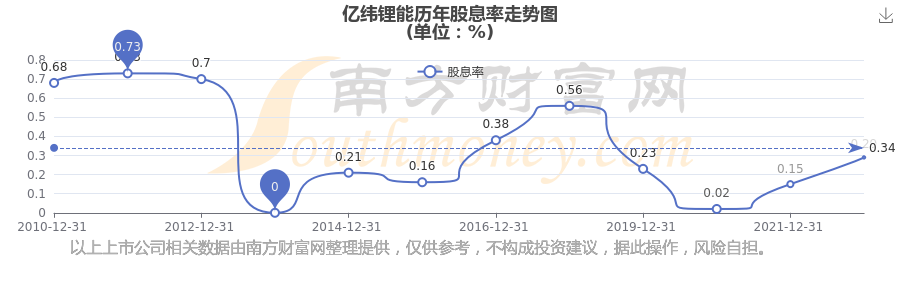億緯鋰能歷年股息率走勢如下圖: