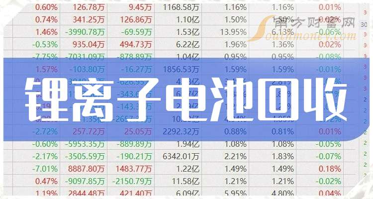 據(jù)南方財富網(wǎng)概念查詢工具數(shù)據(jù)顯示,鋰離子電池回收概念龍頭有: