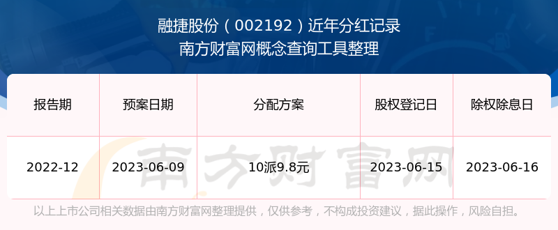 融捷股份最新一次公布的分紅方案為10派9.8元。本次權(quán)益分派股權(quán)登記日為2023年6月15日,除權(quán)除息日為2023年6月16日,派息日為2023年6月16日。
