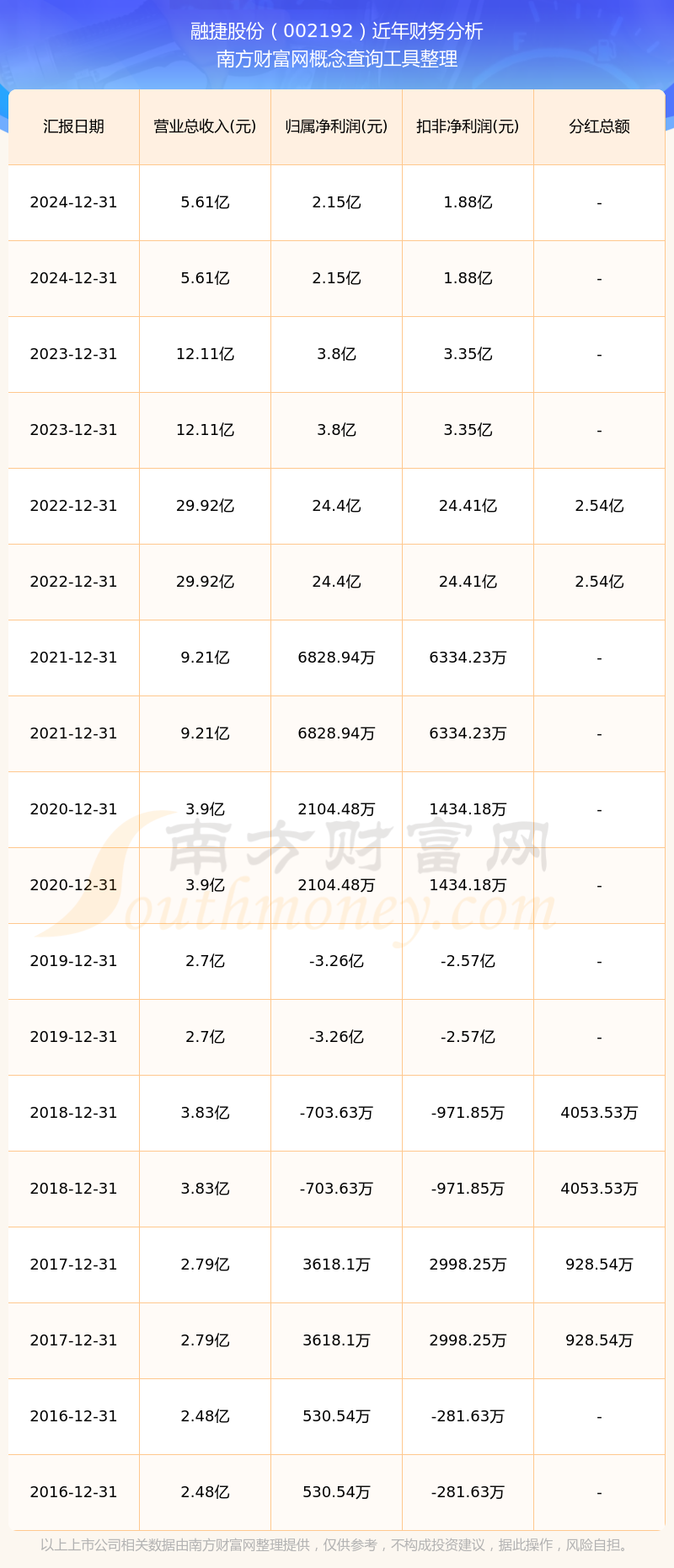 近年融捷股份分紅派息情況如下表所示: