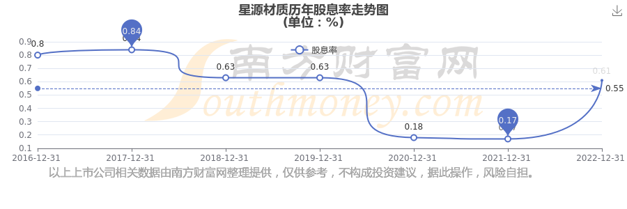 近年星源材質(zhì)年度股息率走勢(shì)如下圖: