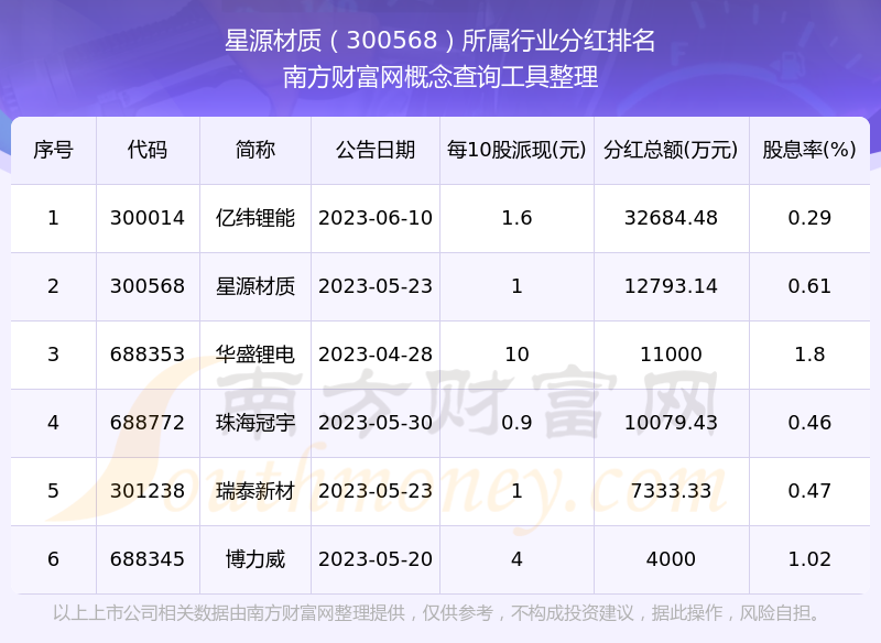 二、星源材質(zhì)300568行業(yè)分紅排名