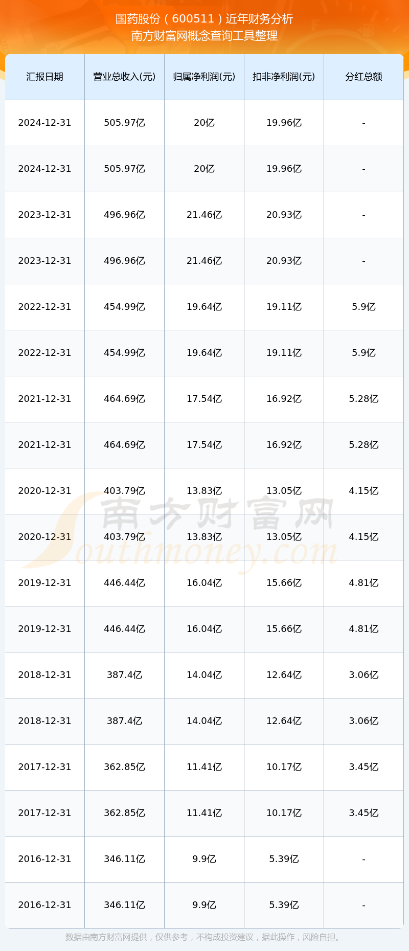 2024年報(bào)顯示,國藥股份實(shí)現(xiàn)營收505.97億,同比增長1.81%;凈利潤20億,同比增長-6.8%;毛利率7.11%。