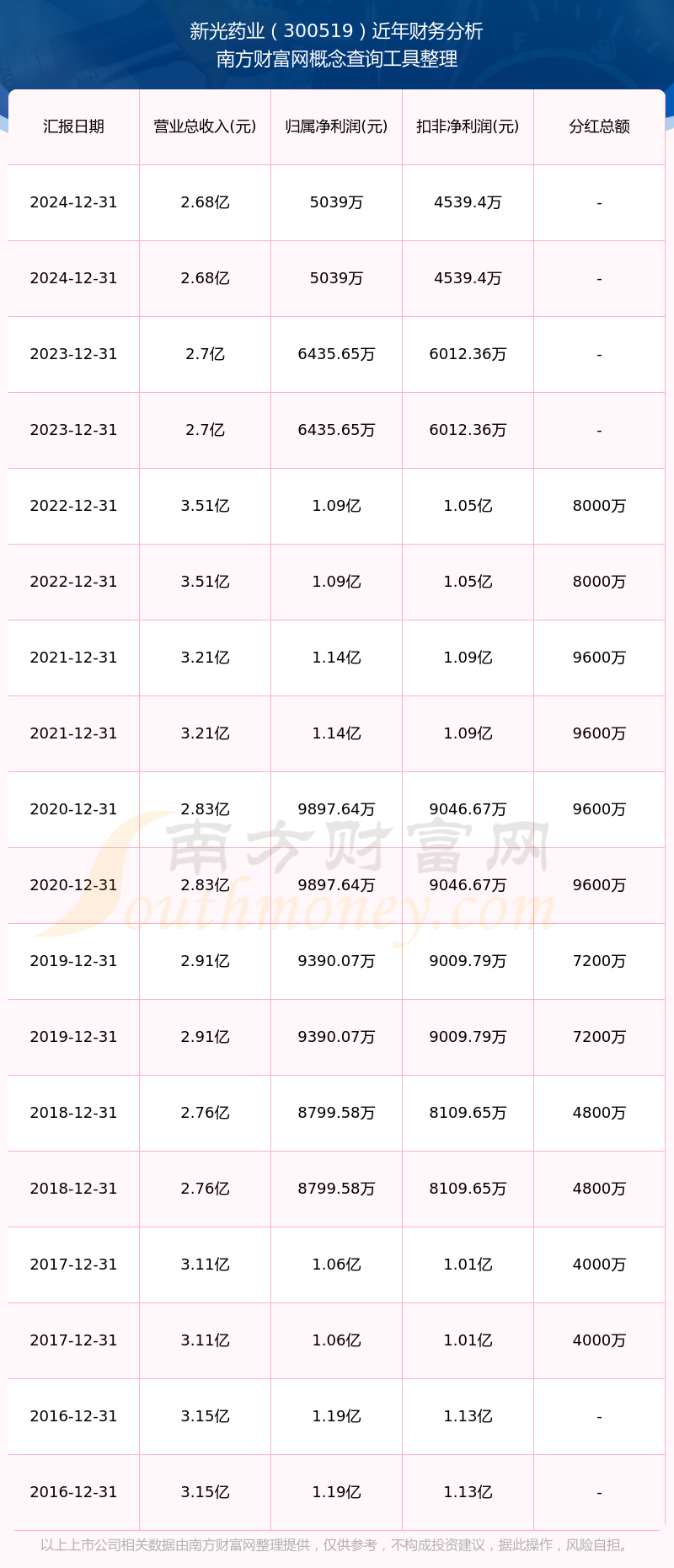 近年新光藥業(yè)分紅派息情況如下表所示:
