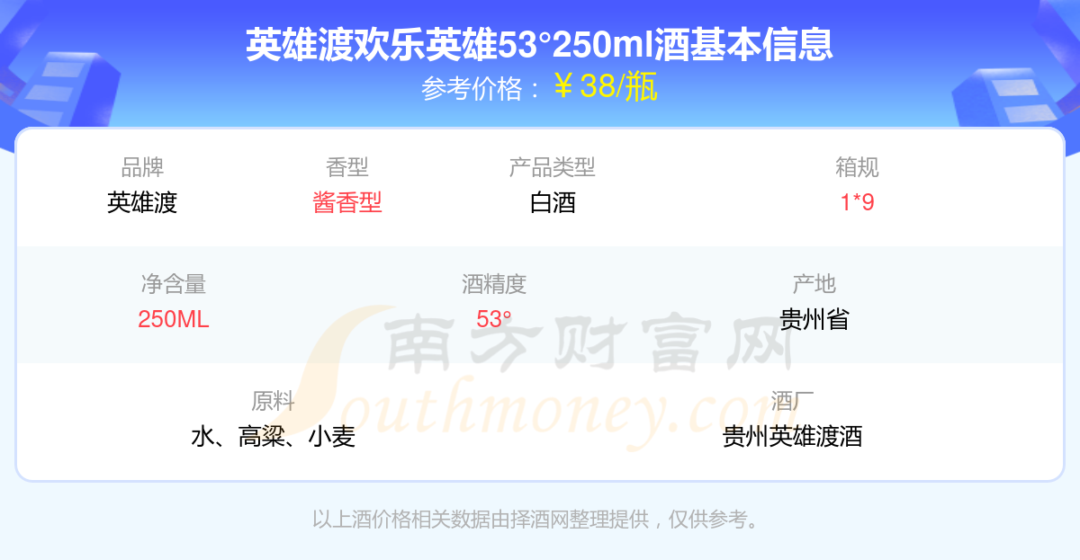 英雄渡歡樂(lè)英雄53°250ml基本信息