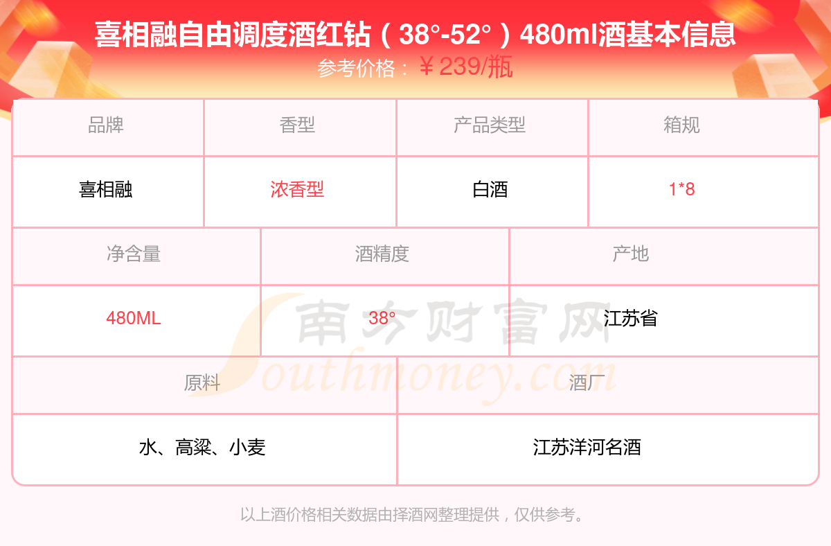 喜相融自由調(diào)度酒紅鉆(38°-52°)480ml基本信息