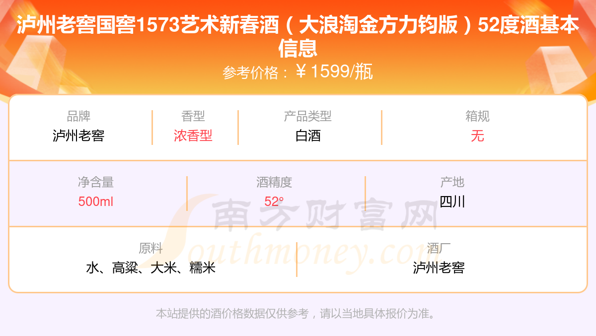 瀘州老窖國(guó)窖1573藝術(shù)新春酒(大浪淘金方力鈞版)52度基本信息