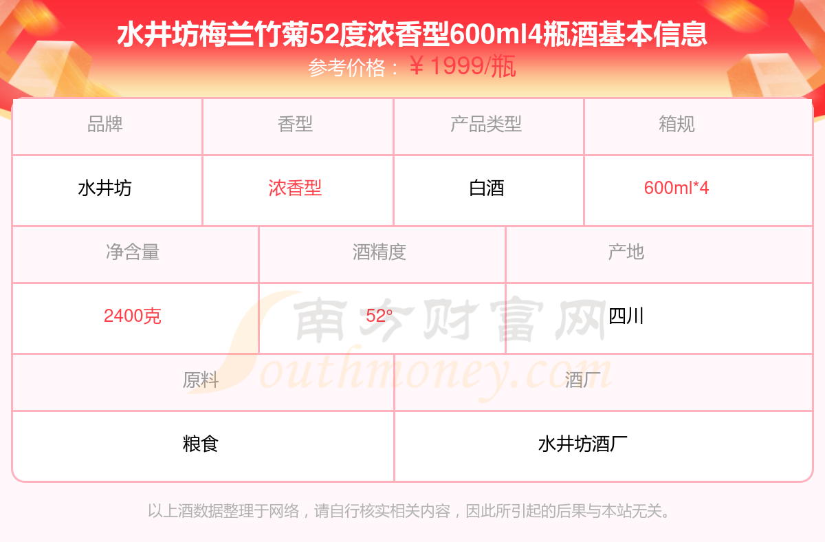 水井坊梅蘭竹菊52度濃香型600ml4瓶基本信息