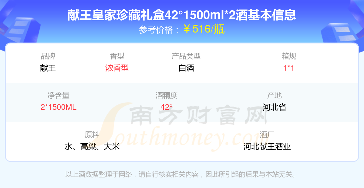 獻王皇家珍藏禮盒42°1500ml*2基本信息
