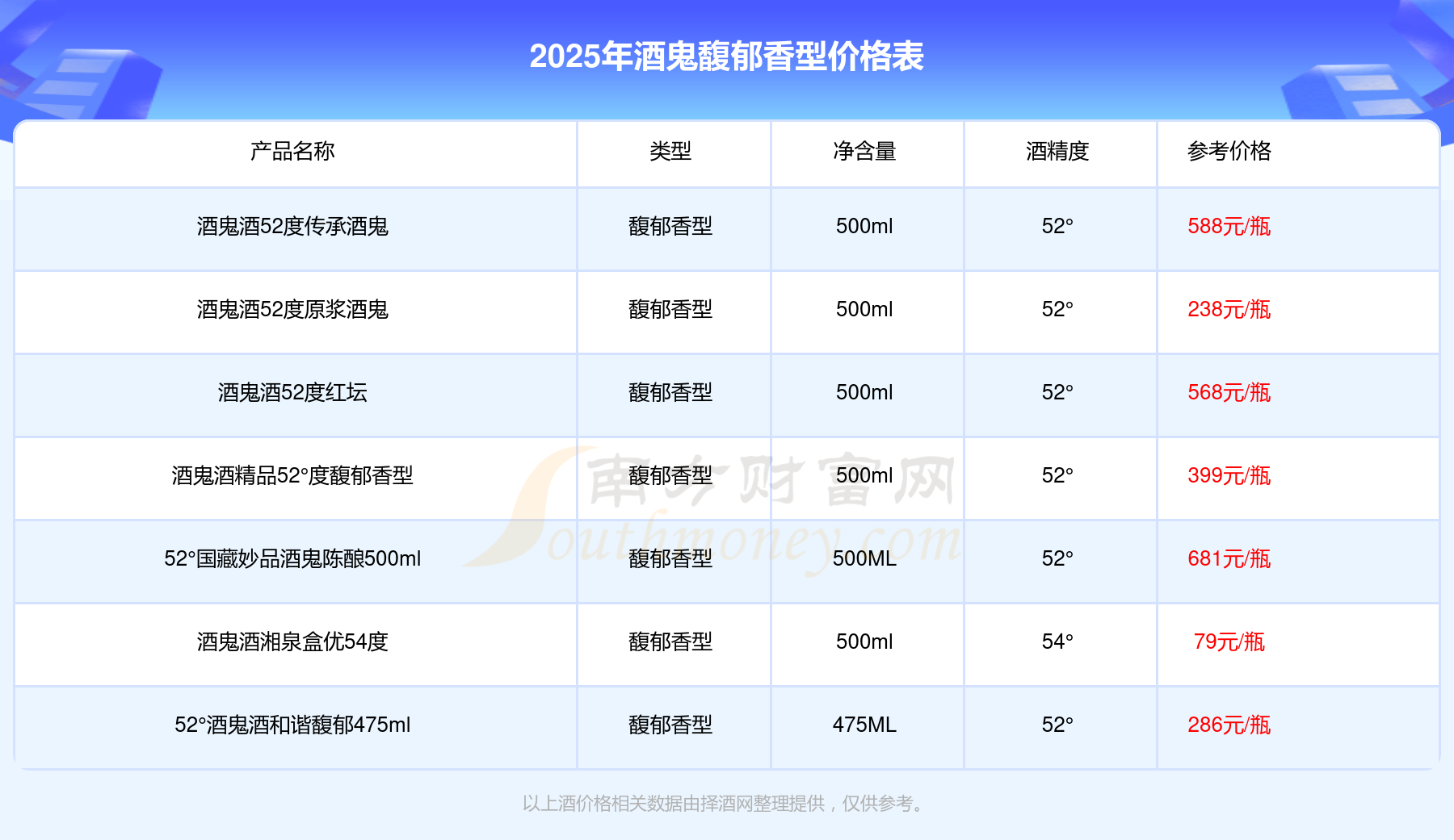 2025年酒鬼馥郁香型酒52°國(guó)藏妙品酒鬼陳釀500ml、酒鬼酒52度傳承酒鬼、酒鬼酒52度紅壇等最新價(jià)格如下:52°國(guó)藏妙品酒鬼陳釀500ml參考價(jià)681元/瓶、酒鬼酒52度傳承酒鬼參考價(jià)588元/瓶、酒鬼酒52度紅壇參考價(jià)568元/瓶。
