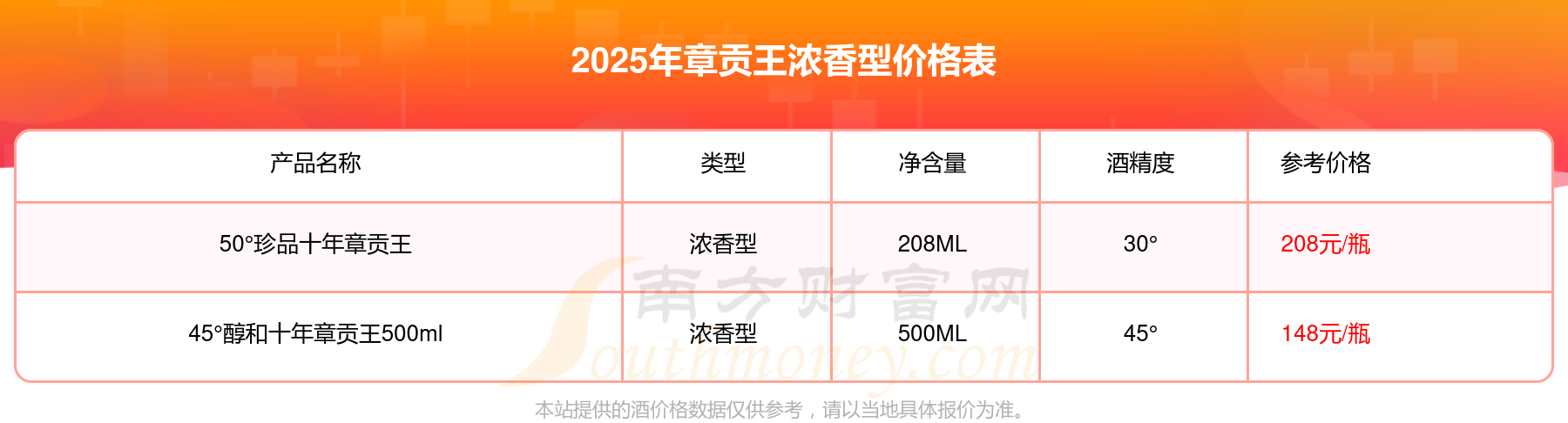 2025年,50°珍品十年章貢王、45°醇和十年章貢王500ml等章貢王濃香型酒價格如下:50°珍品十年章貢王參考價208元/瓶、45°醇和十年章貢王500ml參考價148元/瓶。
