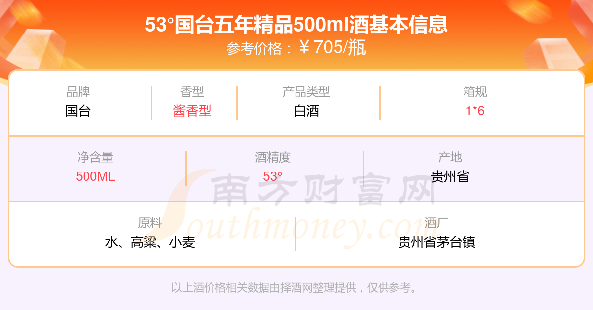 53°國(guó)臺(tái)五年精品500ml基本信息