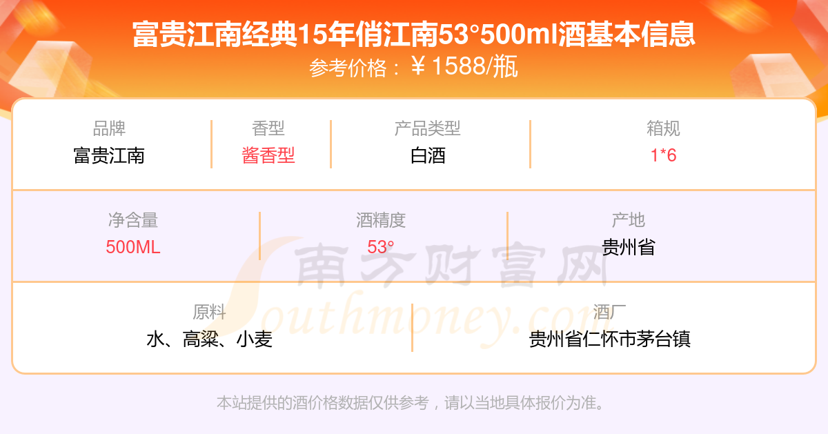 富貴江南經(jīng)典15年俏江南53°500ml基本信息