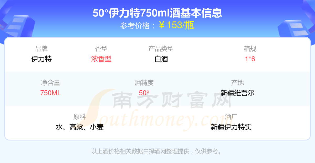 50°伊力特750ml基本信息