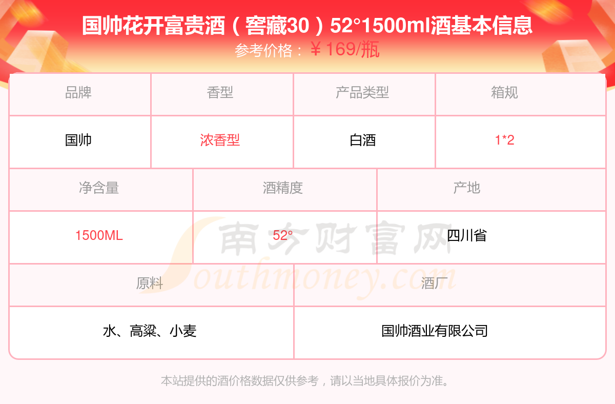 國帥花開富貴酒(窖藏30)52°1500ml基本信息