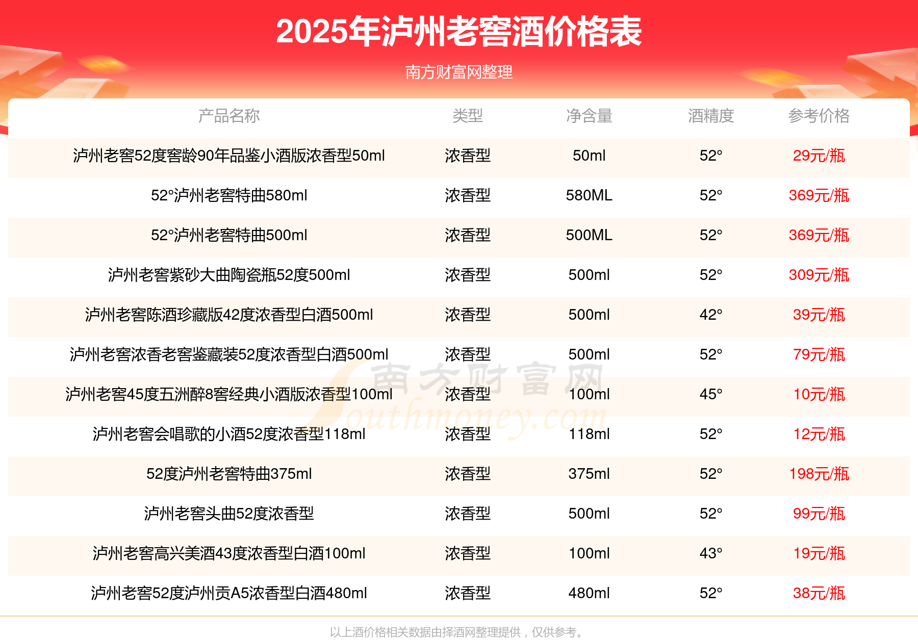 2025年瀘州老窖酒瀘州老窖國窖1573春釀鼠兆豐年E 55度、瀘州老窖國窖1573生命中的那壇酒55度014、瀘州老窖國窖1573春釀鼠兆豐年A 55度、瀘州老窖國窖1573生命中的那壇酒55度013濃香型白酒1000ml、瀘州老窖國窖1573生命中的那壇酒55度009 1000ml、瀘州老窖國窖1573中國品味52度濃香型白酒500ml、瀘州老窖國窖1573許燎源概念作品58度濃香型白酒1000ml等最新價格如下:瀘州老窖國窖1573春釀鼠兆豐年E 55度參考價17999元/瓶、瀘州老窖國窖1573生命中的那壇酒55度014參考價9999元/瓶、瀘州老窖國窖1573春釀鼠兆豐年A 55度參考價5088元/瓶、瀘州老窖國窖1573生命中的那壇酒55度013濃香型白酒1000ml參考價4988元/瓶、瀘州老窖國窖1573生命中的那壇酒55度009 1000ml參考價4288元/瓶、瀘州老窖國窖1573中國品味52度濃香型白酒500ml參考價2888元/瓶、瀘州老窖國窖1573許燎源概念作品58度濃香型白酒1000ml參考價2680元/瓶。