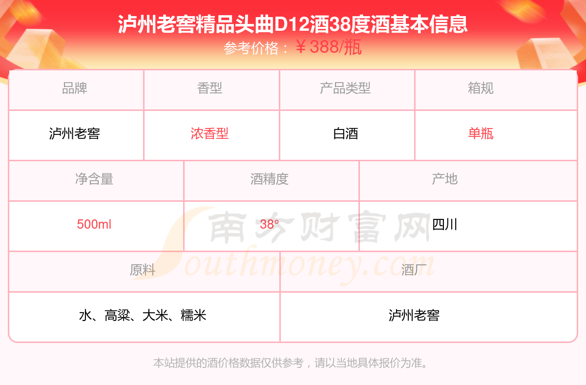瀘州老窖精品頭曲D12酒38度基本信息
