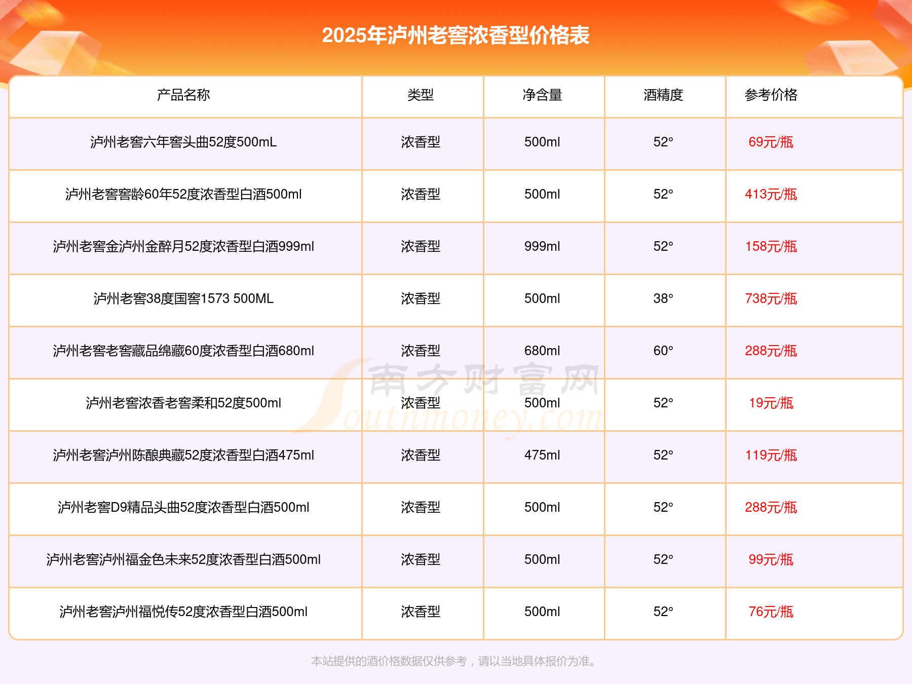 2025瀘州老窖濃香型酒最新價(jià)格:瀘州老窖國(guó)窖1573春釀鼠兆豐年E 55度參考價(jià)17999元/瓶、瀘州老窖國(guó)窖1573生命中的那壇酒55度014參考價(jià)9999元/瓶、瀘州老窖國(guó)窖1573春釀鼠兆豐年A 55度參考價(jià)5088元/瓶。