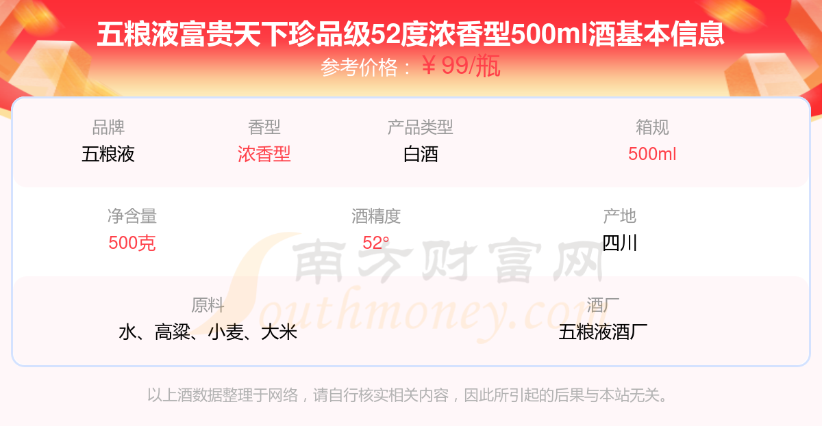 五糧液富貴天下珍品級52度濃香型500ml基本信息