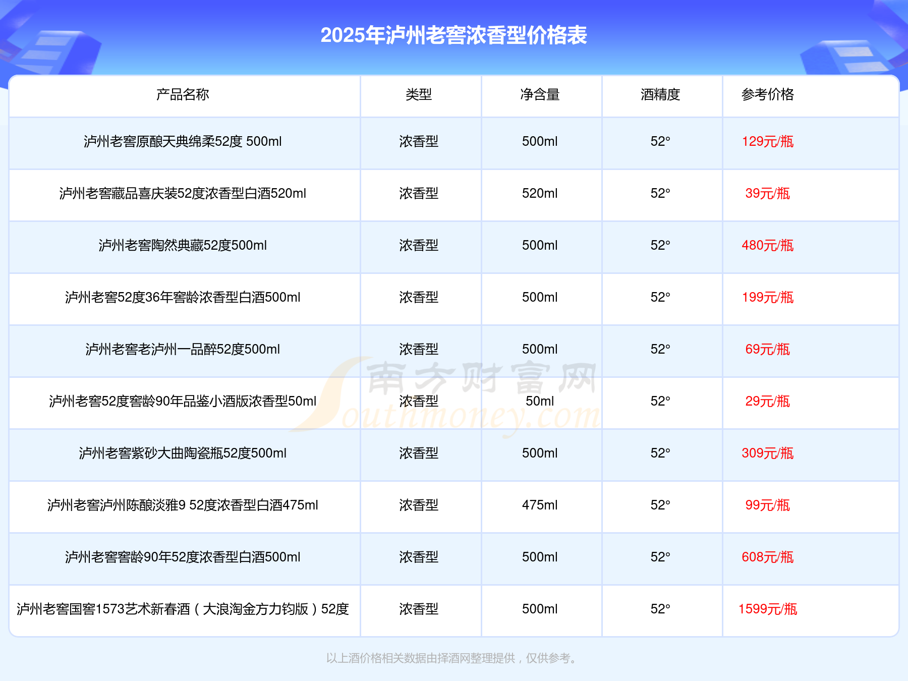瀘州老窖國窖1573春釀鼠兆豐年E 55度參考價17999元/瓶、瀘州老窖國窖1573生命中的那壇酒55度014參考價9999元/瓶、瀘州老窖國窖1573春釀鼠兆豐年A 55度參考價5088元/瓶、瀘州老窖國窖1573生命中的那壇酒55度013濃香型白酒1000ml參考價4988元/瓶、瀘州老窖國窖1573生命中的那壇酒55度009 1000ml參考價4288元/瓶、瀘州老窖國窖1573中國品味52度濃香型白酒500ml參考價2888元/瓶。