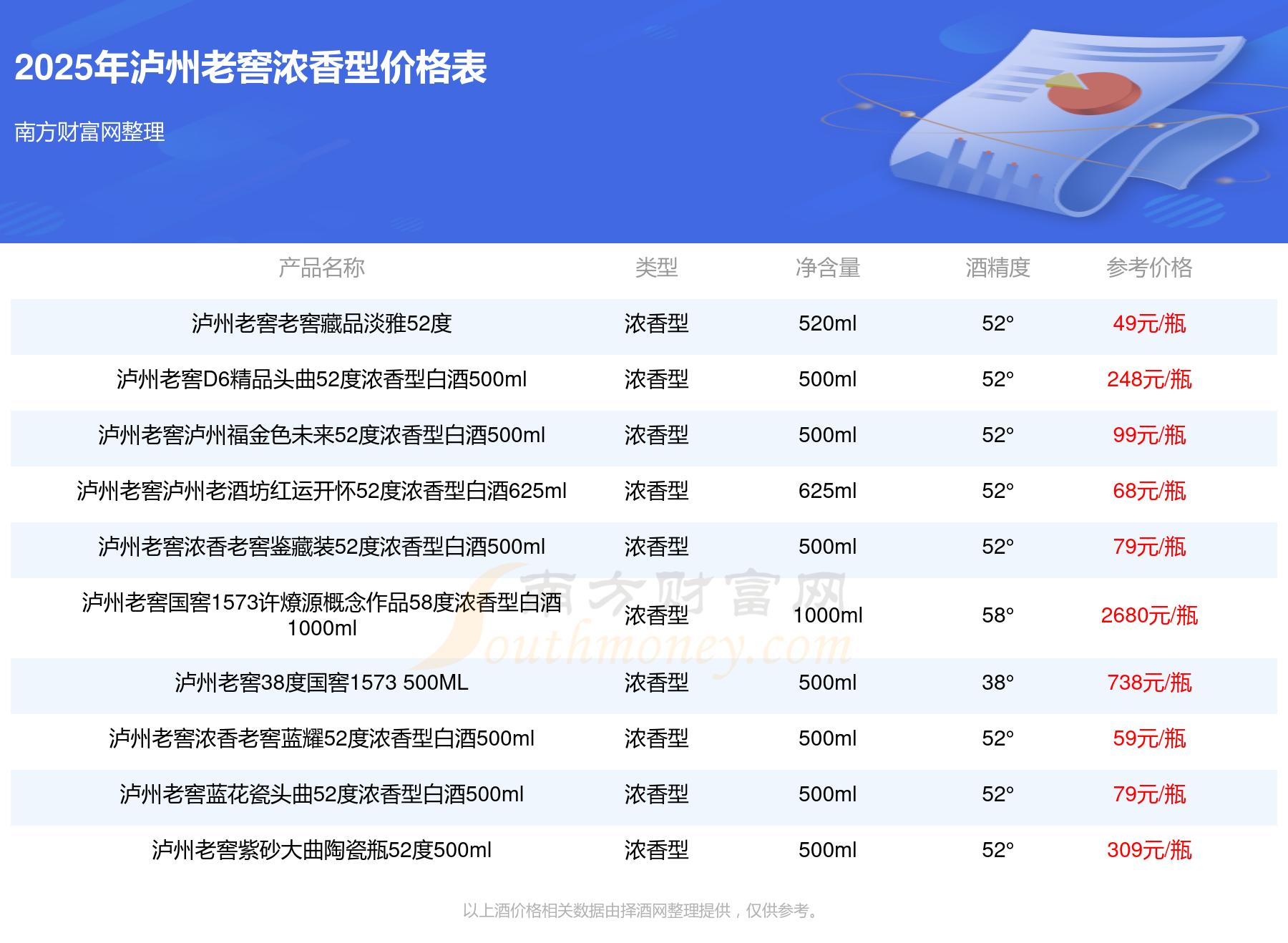 2025瀘州老窖濃香型酒最新價格:瀘州老窖國窖1573春釀鼠兆豐年E 55度參考價17999元/瓶、瀘州老窖國窖1573生命中的那壇酒55度014參考價9999元/瓶、瀘州老窖國窖1573春釀鼠兆豐年A 55度參考價5088元/瓶。