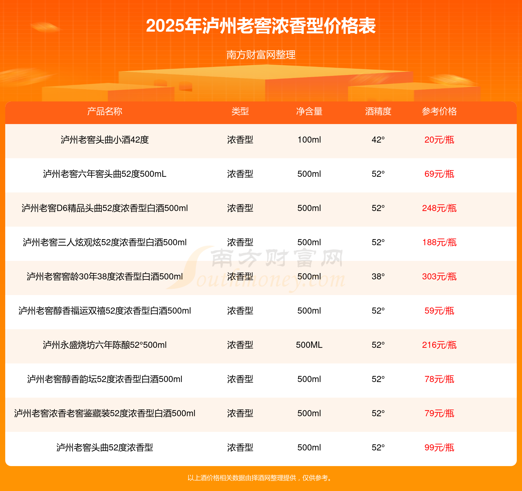 瀘州老窖濃香型酒最新價(jià)格2025:瀘州老窖國窖1573春釀鼠兆豐年E 55度參考價(jià)17999元/瓶、瀘州老窖國窖1573生命中的那壇酒55度014參考價(jià)9999元/瓶、瀘州老窖國窖1573春釀鼠兆豐年A 55度參考價(jià)5088元/瓶、瀘州老窖國窖1573生命中的那壇酒55度013濃香型白酒1000ml參考價(jià)4988元/瓶、瀘州老窖國窖1573生命中的那壇酒55度009 1000ml參考價(jià)4288元/瓶。