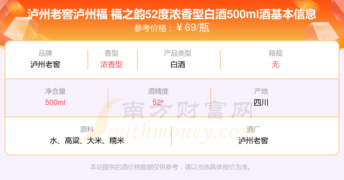 瀘州老窖瀘州福 福之韻52度濃香型白酒500ml基本信息