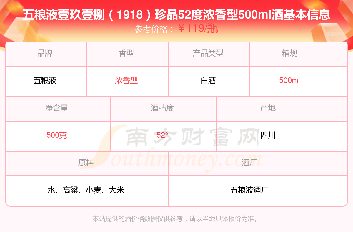 五糧液壹玖壹捌(1918)珍品52度濃香型500ml基本信息