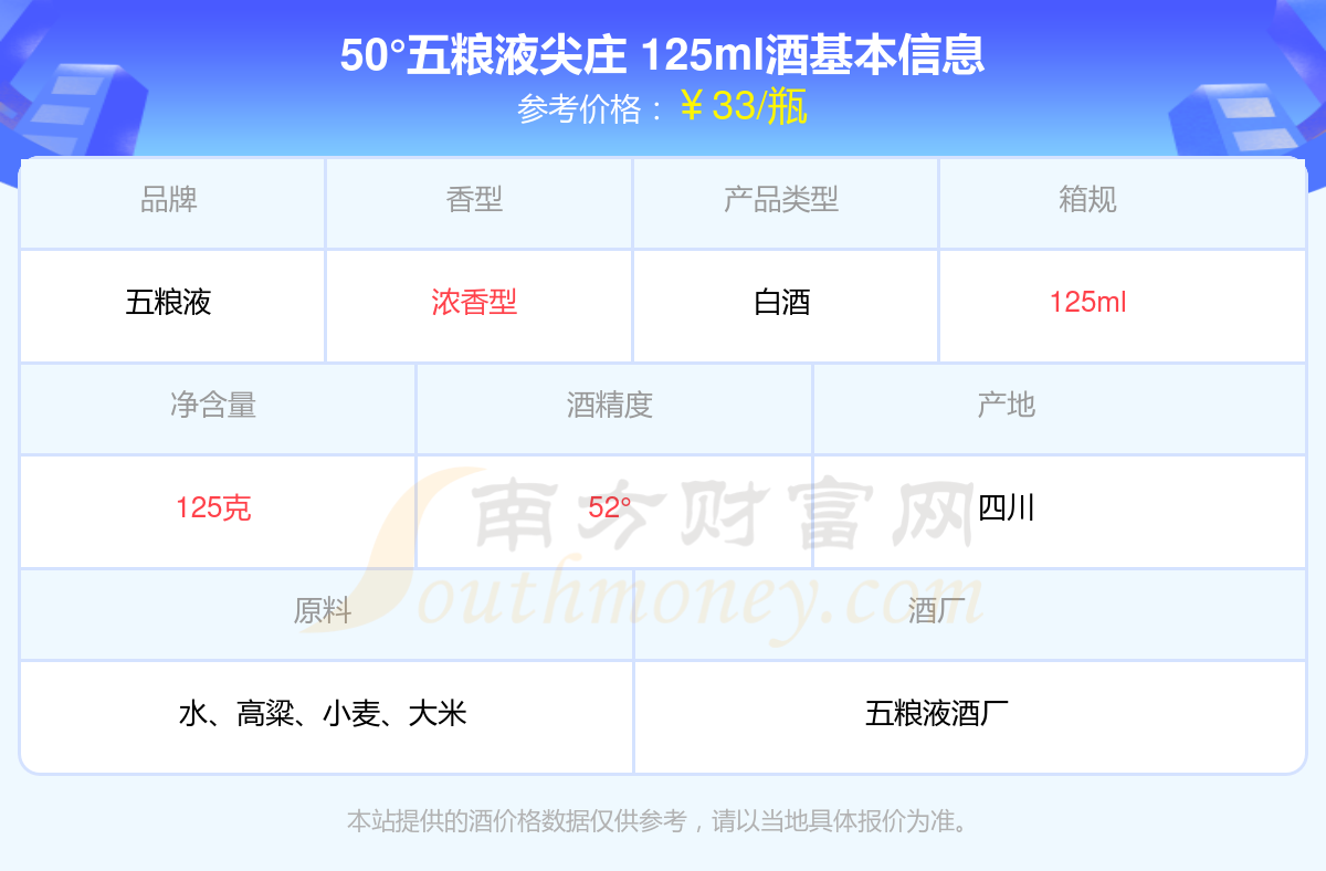 50°五糧液尖莊 125ml基本信息