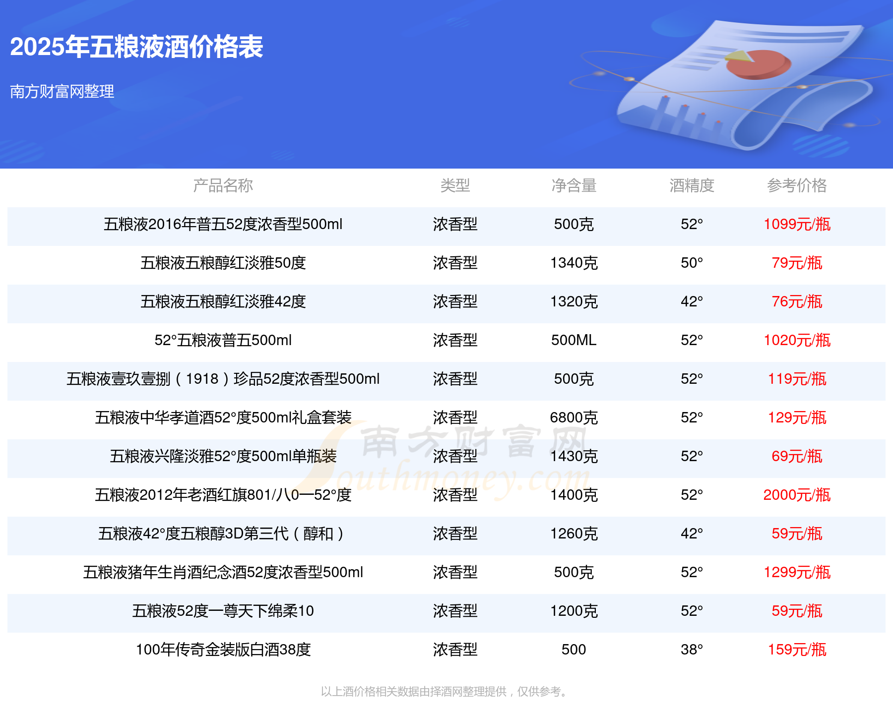 當(dāng)前五糧液酒價(jià)格最高的酒為五糧液百年世博世紀(jì)榮耀紀(jì)念酒60°999ml,參考價(jià)26980元/瓶,而五糧液酒價(jià)格最低的是五糧液干一杯小瓶46度,參考價(jià)16元/瓶,價(jià)格高低差為26964元/瓶。