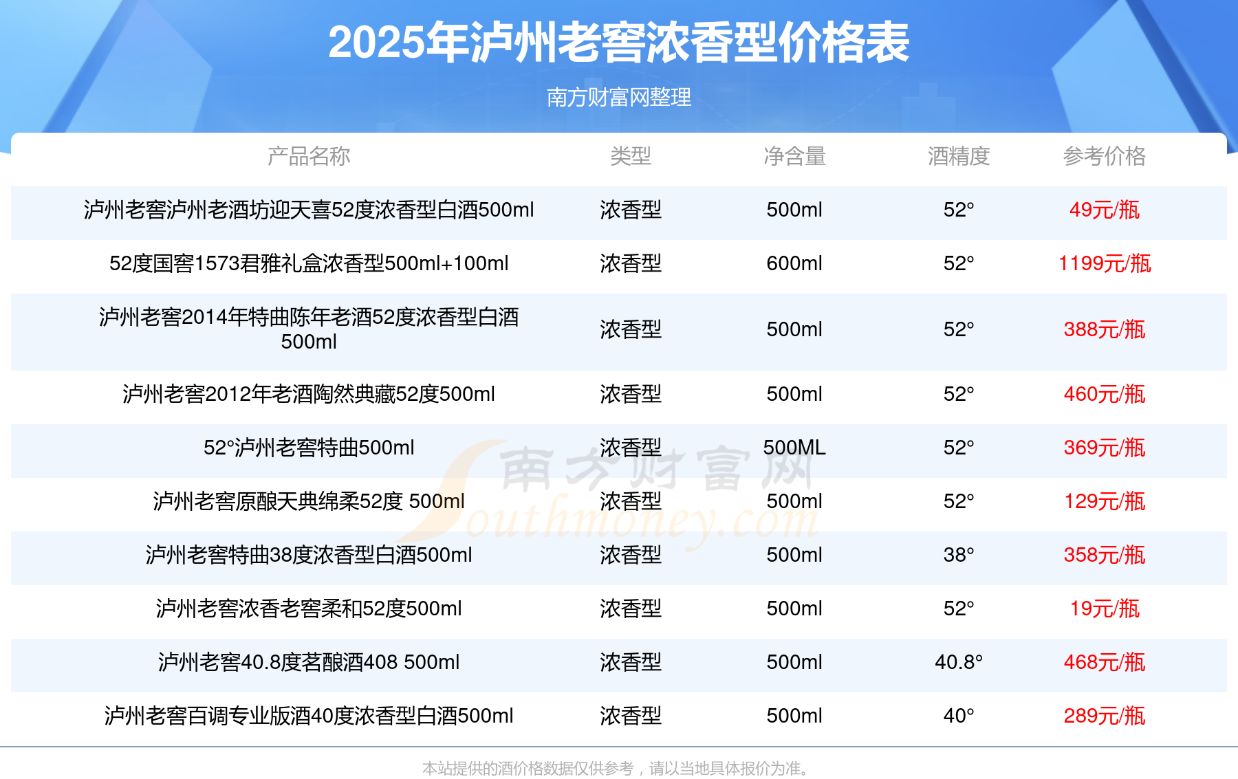 2025年,瀘州老窖國(guó)窖1573春釀鼠兆豐年E 55度、瀘州老窖國(guó)窖1573生命中的那壇酒55度014、瀘州老窖國(guó)窖1573春釀鼠兆豐年A 55度、瀘州老窖國(guó)窖1573生命中的那壇酒55度013濃香型白酒1000ml等瀘州老窖濃香型酒價(jià)格如下:
