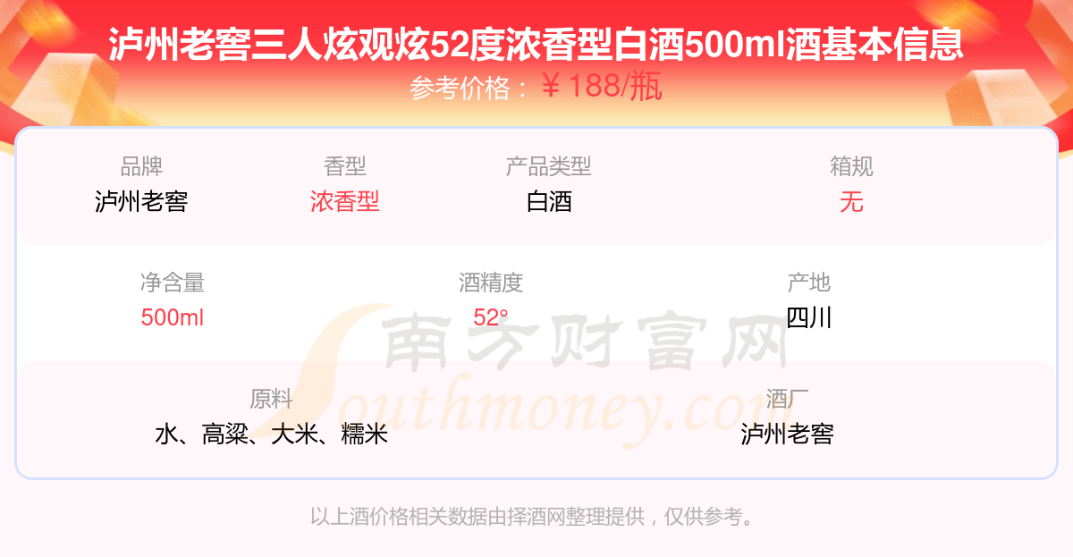 瀘州老窖三人炫觀炫52度濃香型白酒500ml基本信息