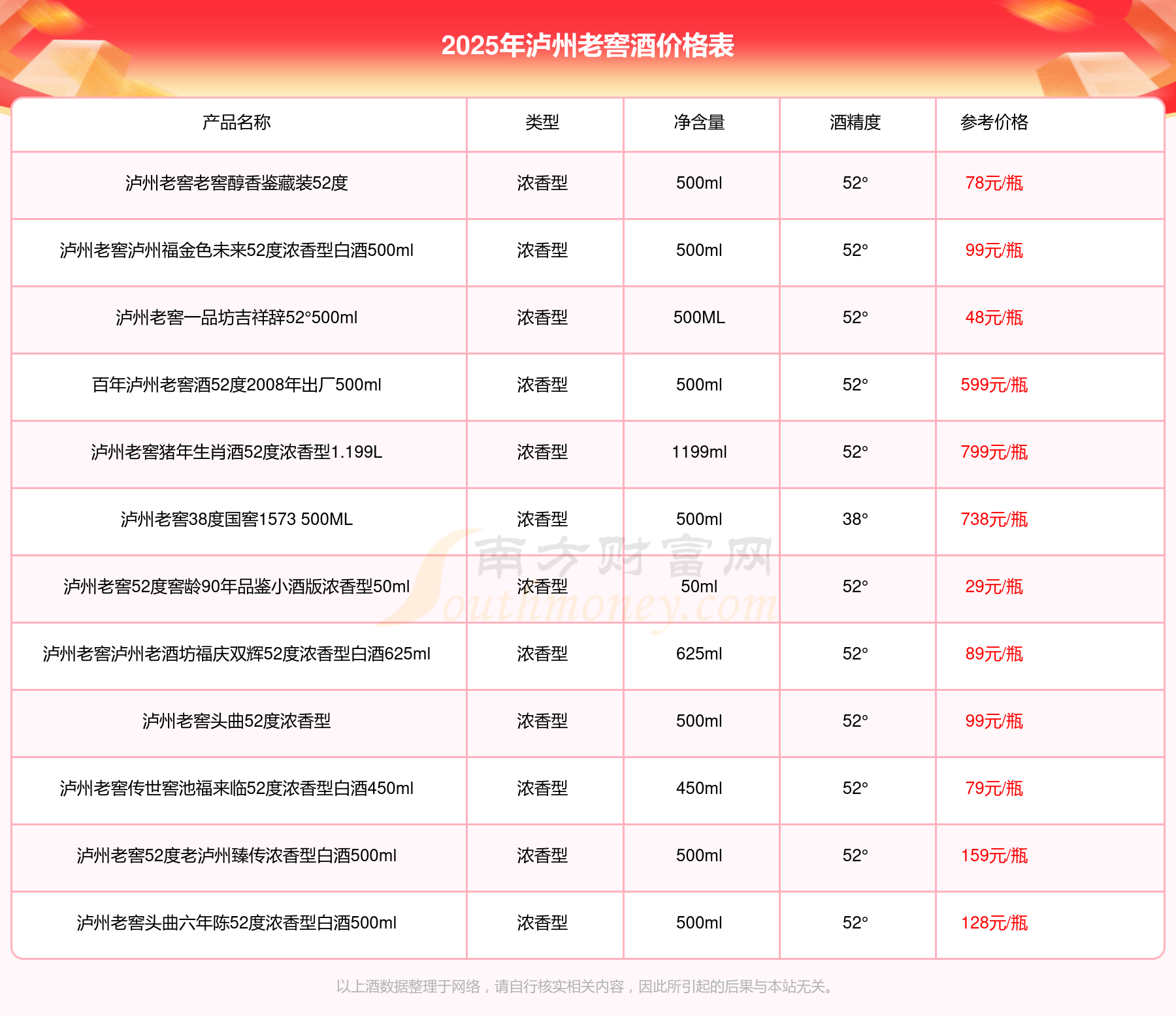 2025年,瀘州老窖國窖1573春釀鼠兆豐年E 55度、瀘州老窖國窖1573生命中的那壇酒55度014、瀘州老窖國窖1573春釀鼠兆豐年A 55度等瀘州老窖酒價(jià)格如下: