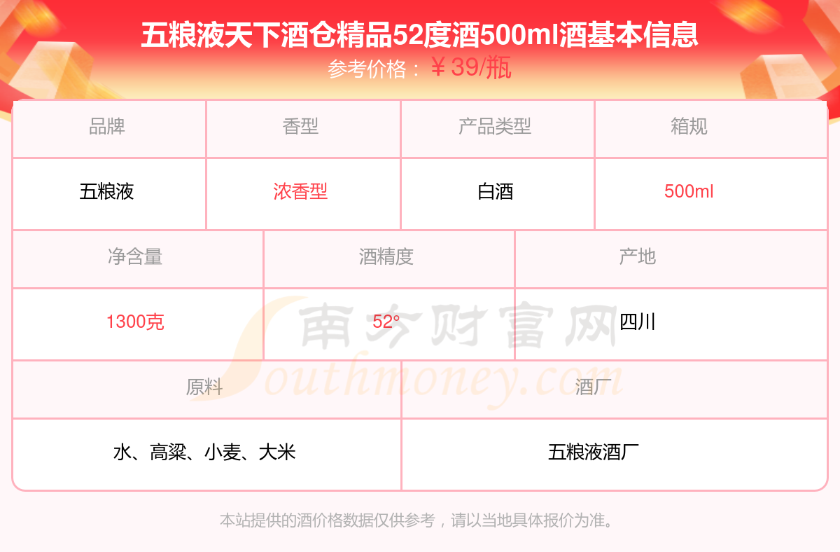 五糧液天下酒倉(cāng)精品52度酒500ml基本信息
