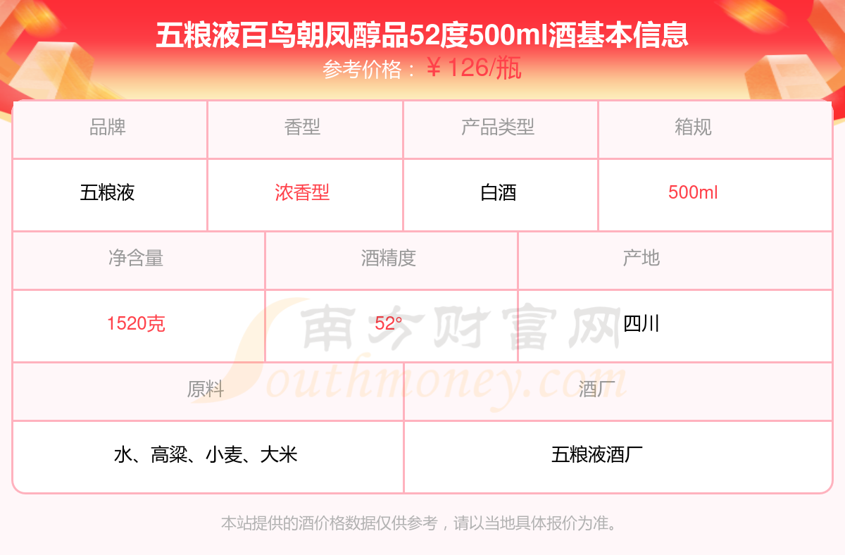 五糧液百鳥(niǎo)朝鳳醇品52度500ml基本信息