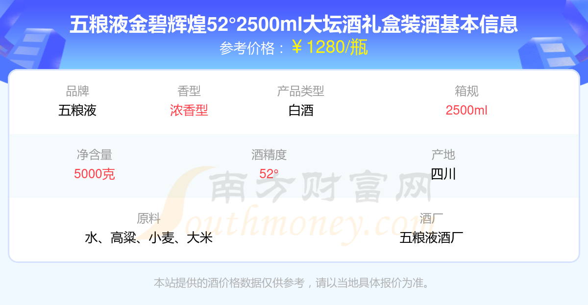 五糧液金碧輝煌52°2500ml大壇酒禮盒裝基本信息