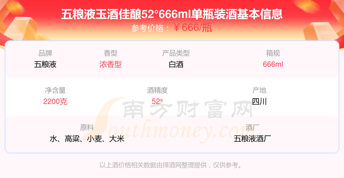 五糧液玉酒佳釀52°666ml單瓶裝基本信息