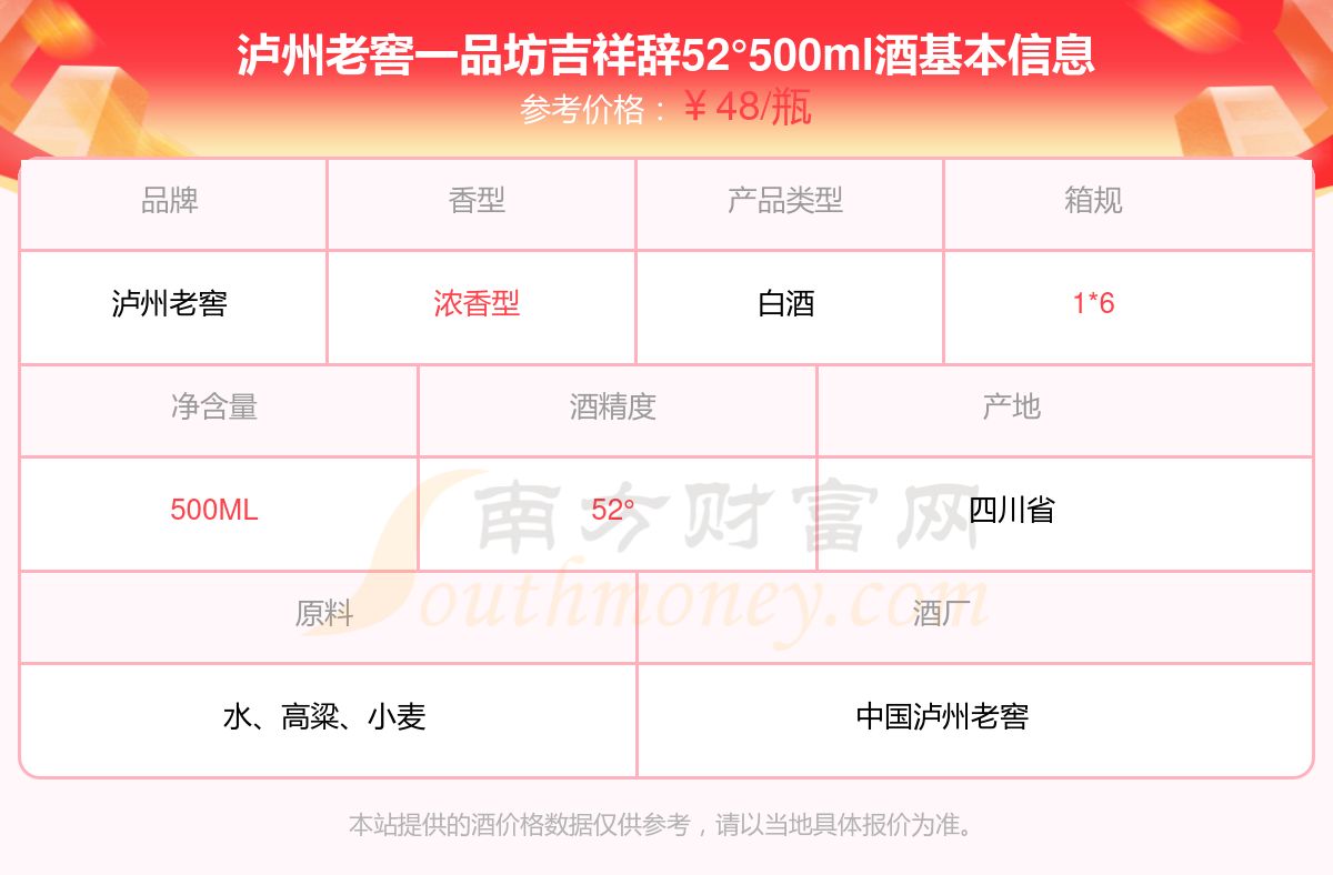 瀘州老窖一品坊吉祥辭52°500ml基本信息