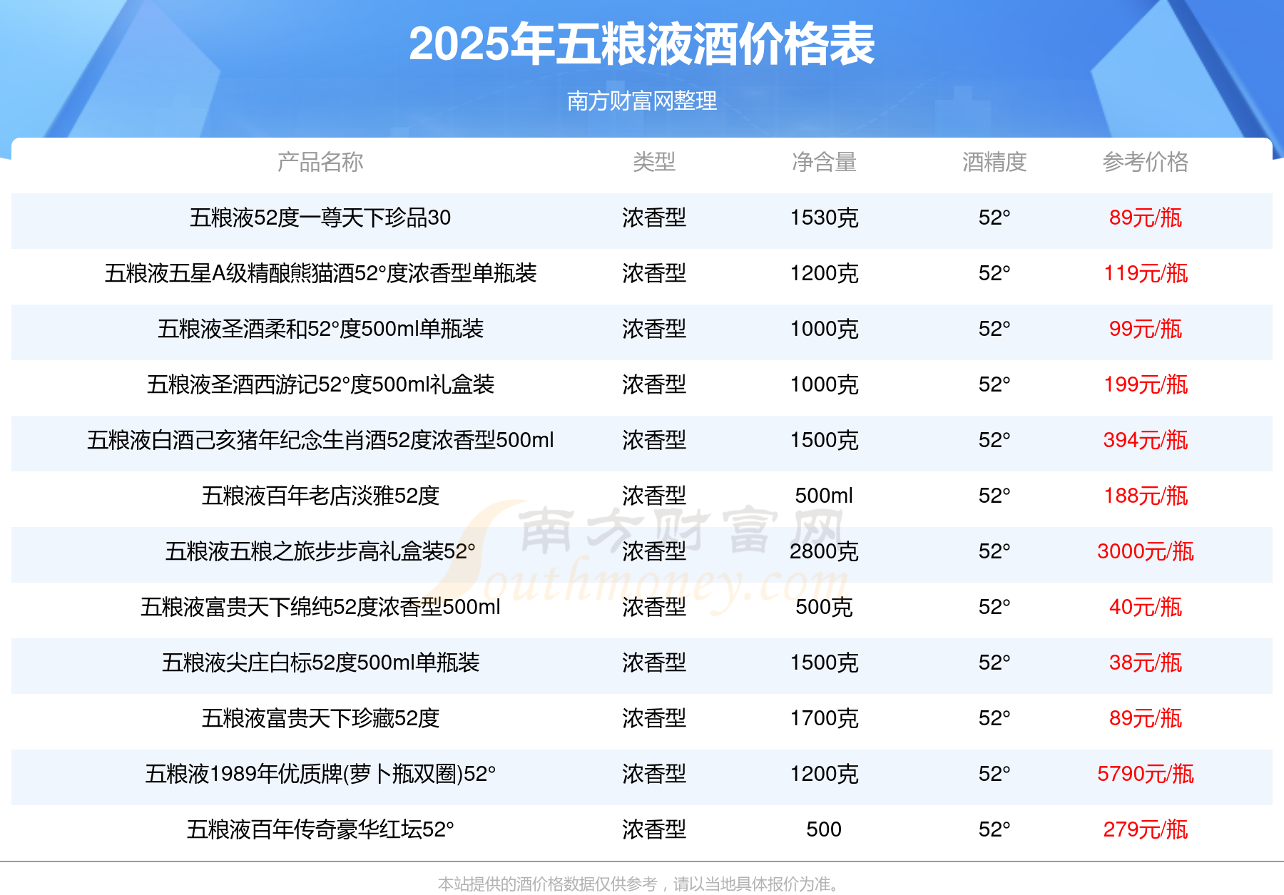 當前五糧液酒價格最高的酒為五糧液百年世博世紀榮耀紀念酒60°999ml,參考價26980元/瓶,而五糧液酒價格最低的是五糧液干一杯小瓶46度,參考價16元/瓶,價格高低差為26964元/瓶。
