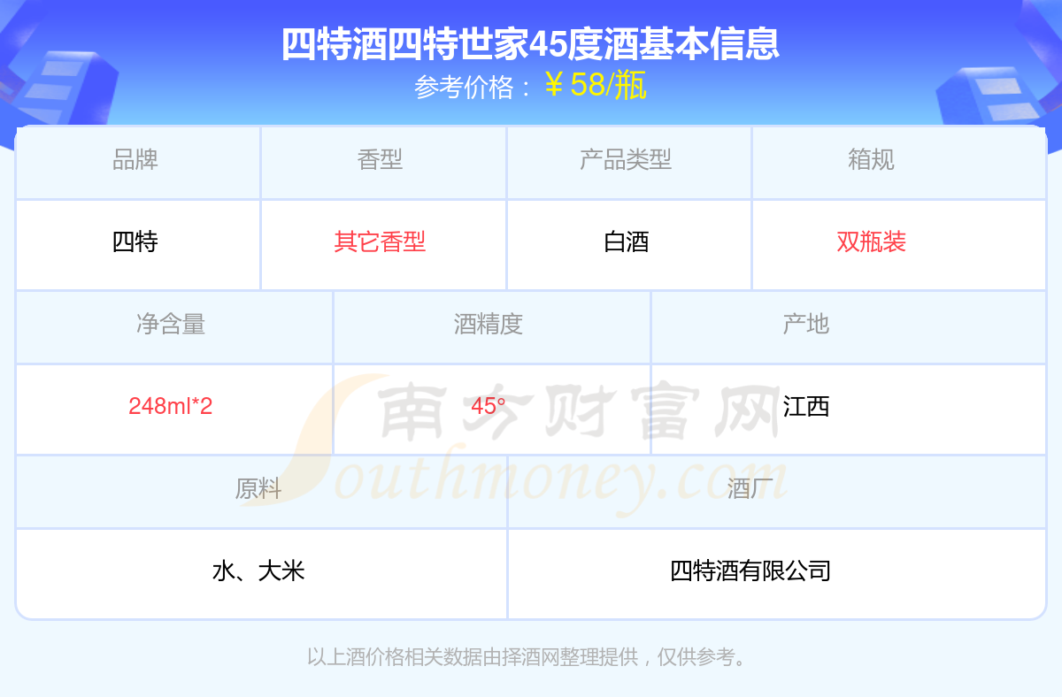 “四特牌”四特酒為特香型白酒,主要產品有:四特珍藏系列、四特年份酒系列、四特東方韻系列、四特錦瓷系列、區(qū)域產品系列等,全覆蓋產品結構,滿足各階層消費需求。四特酒憑借“特香型”白酒獨特的口感和卓越的品質,得到眾多消費者的青睞,暢銷全國各地,被譽為“江西第一名酒”。