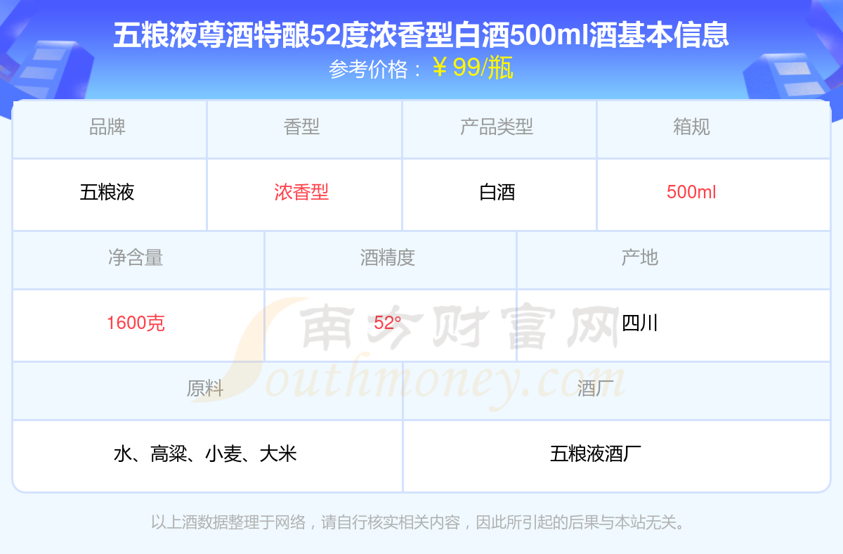 五糧液尊酒特釀52度濃香型白酒500ml基本信息