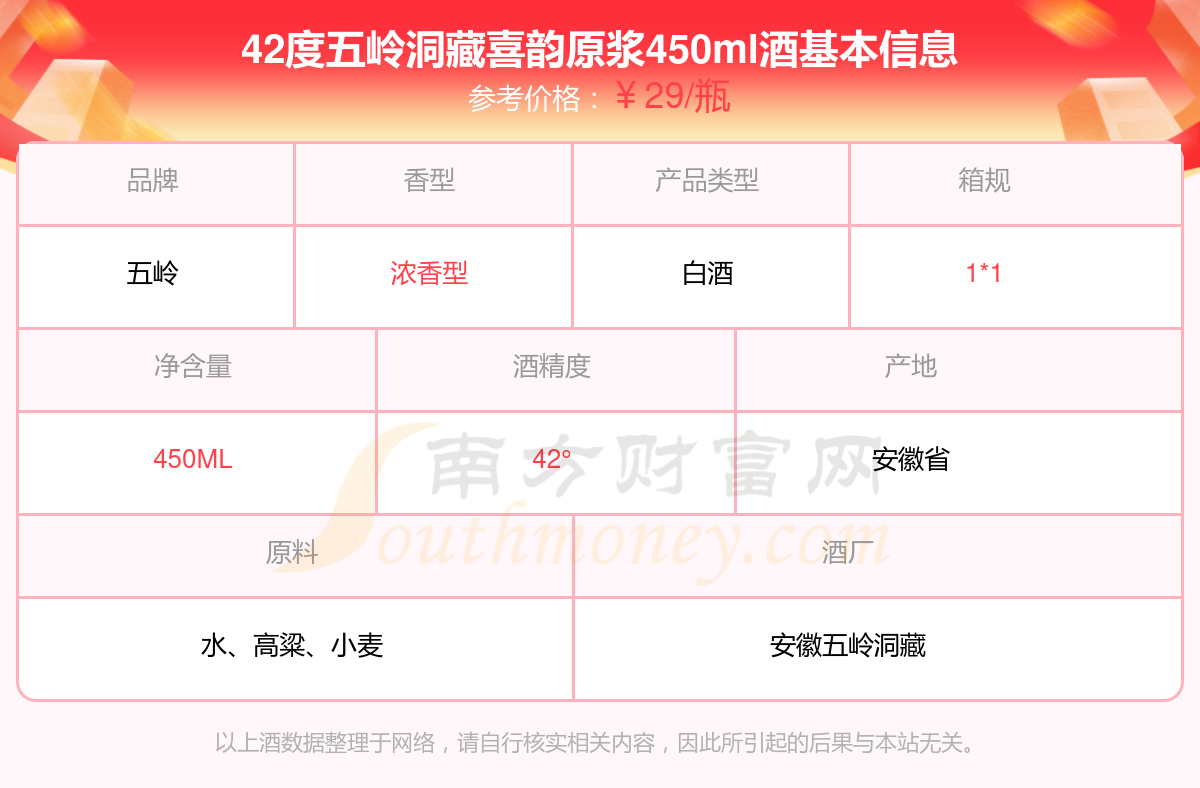 42度五嶺洞藏喜韻原漿450ml基本信息
