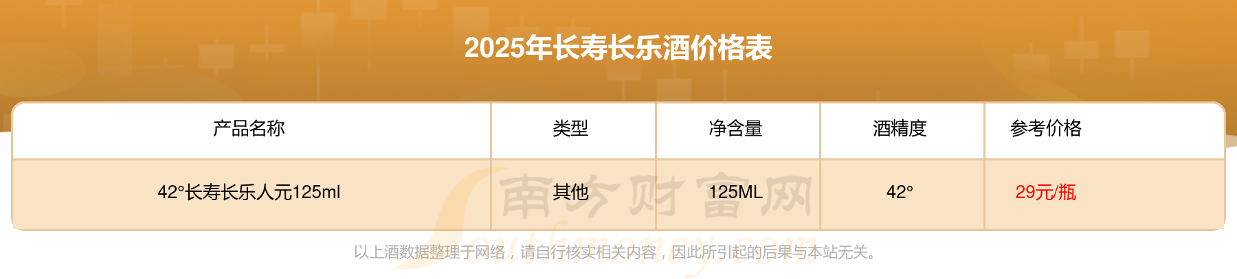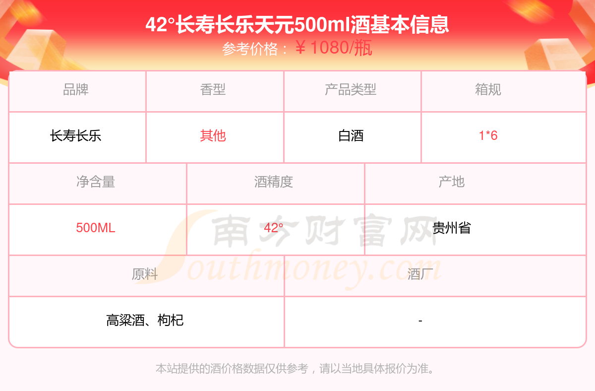 42°長(zhǎng)壽長(zhǎng)樂(lè)天元500ml酒價(jià)格2025查詢