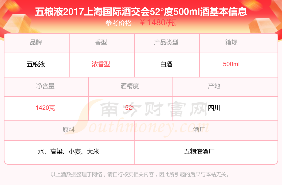 五糧液2017上海國際酒交會52°度500ml基本信息
