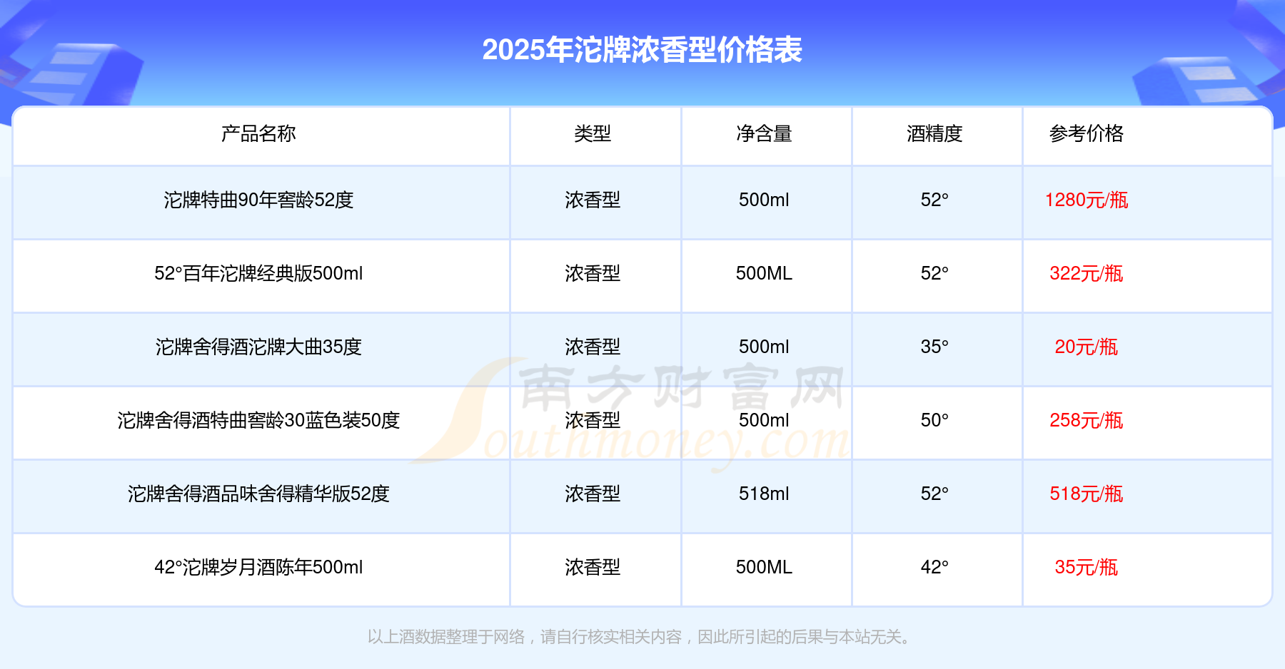 2025年沱牌濃香型價(jià)格最高的酒是沱牌特曲90年窖齡52度,參考價(jià)1280元/瓶,最低的是沱牌舍得酒沱牌大曲35度,參考價(jià)20元/瓶,價(jià)格高低差為1260元/瓶。