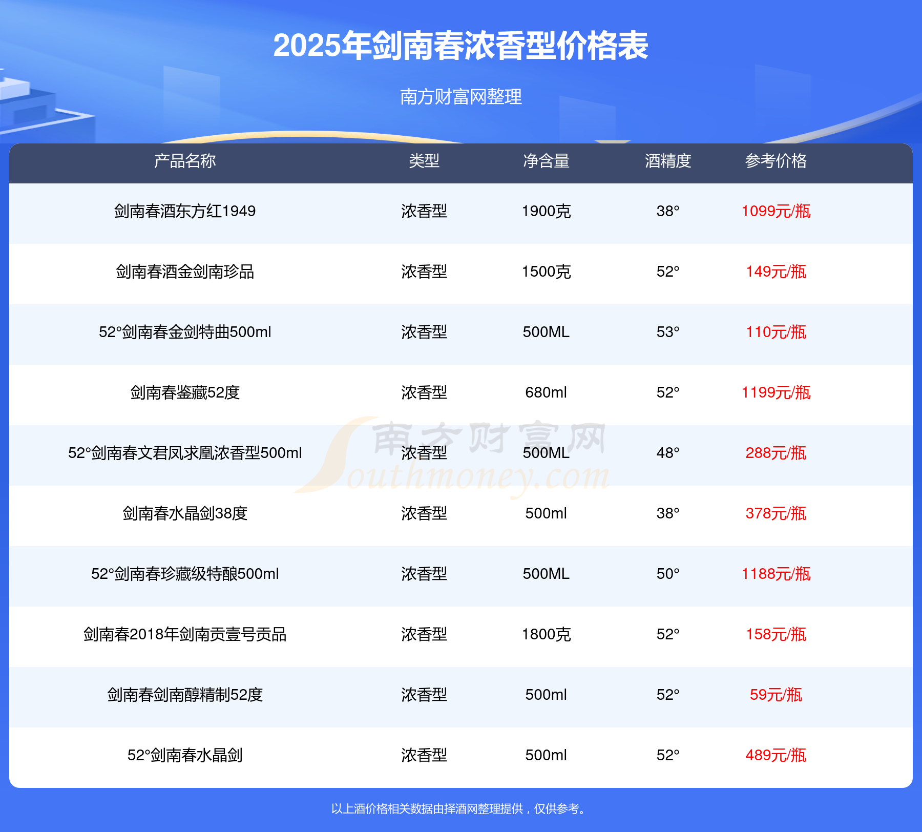 劍南春濃香型酒最新價(jià)格2025: